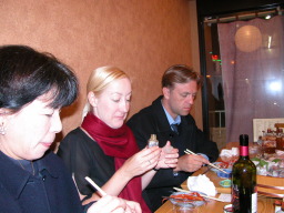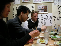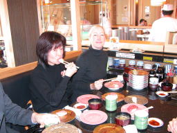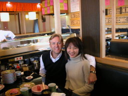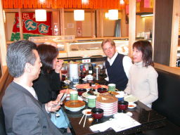 | アラン&ドナ・シングラーがお刺身に夢中。 ドナの大好きなお刺身は「アジ」だそうです。 なかなかツウですね。 |