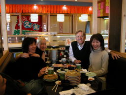 | 26日の昼食は廻る回転寿司へ出向きました。 ドナの大好物は、オオトロ、ブリトロ、アジのようです。 このお寿司屋さんは、富山の新湊にあります老舗のお寿司屋さんで、昨年富山市に出店し大変繁盛しています。 富山へお越しの折は是非お立ち寄り下さい。 リーズナブルで美味しいですよ。 |